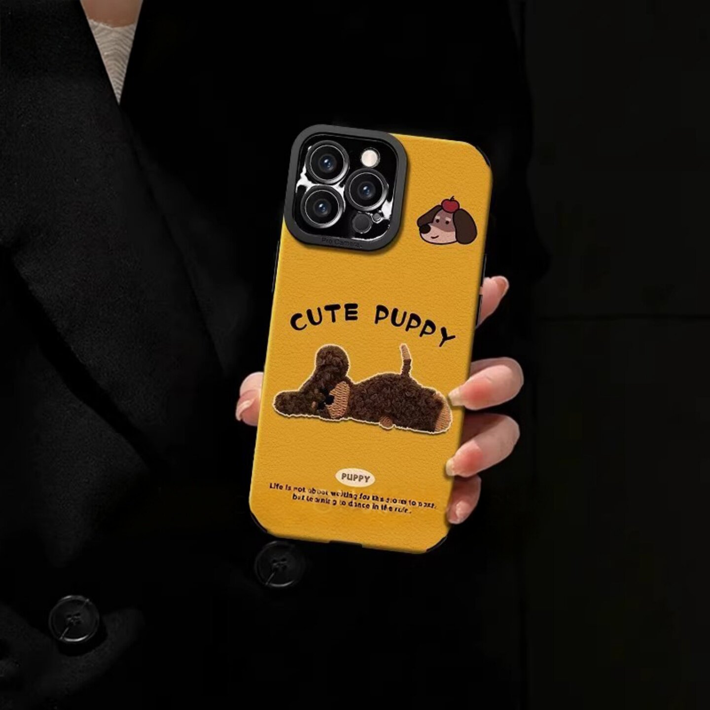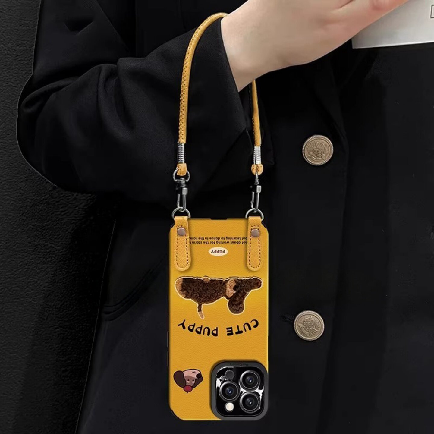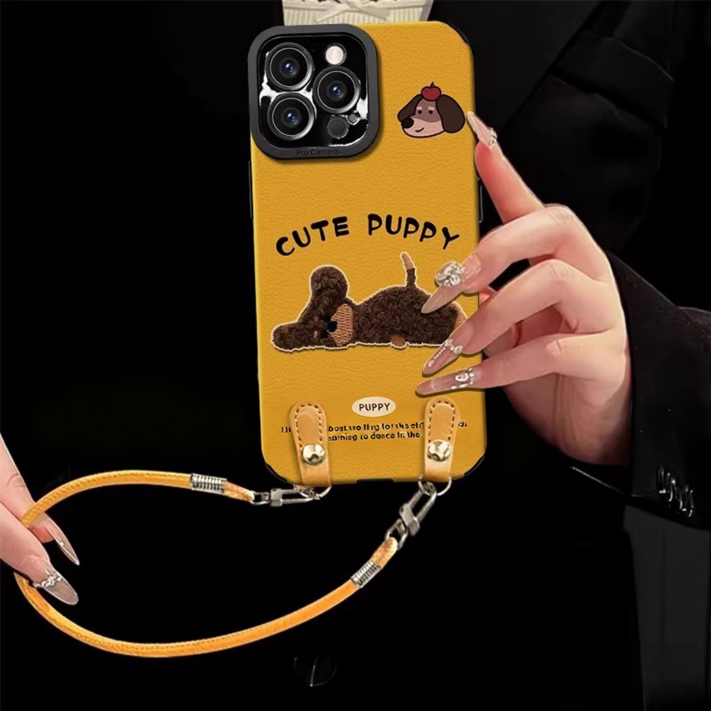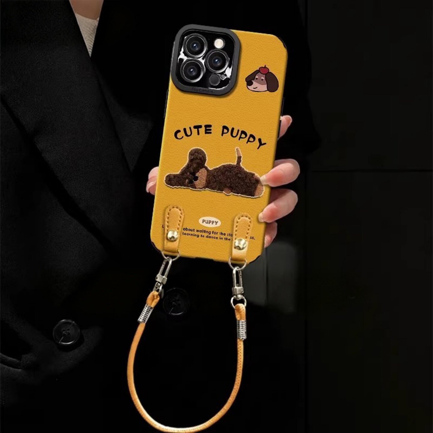 适用苹果17Promax手机壳新款高级感iPhone16可爱小狗秋冬皮质15pro全包镜头14独特的13带挂绳超火女12保护套
