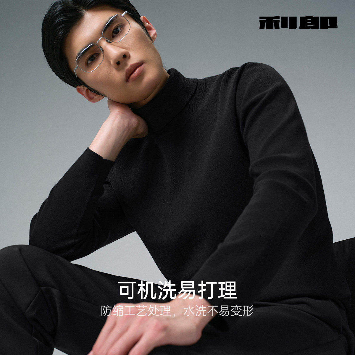 利郎官方可机洗可翻高领羊毛衫