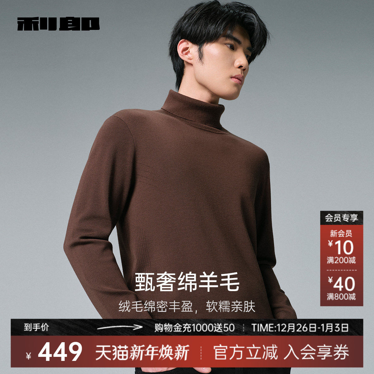 【可机洗/可翻高领】利郎官方羊毛衫男2025冬季新款保暖毛衣男装