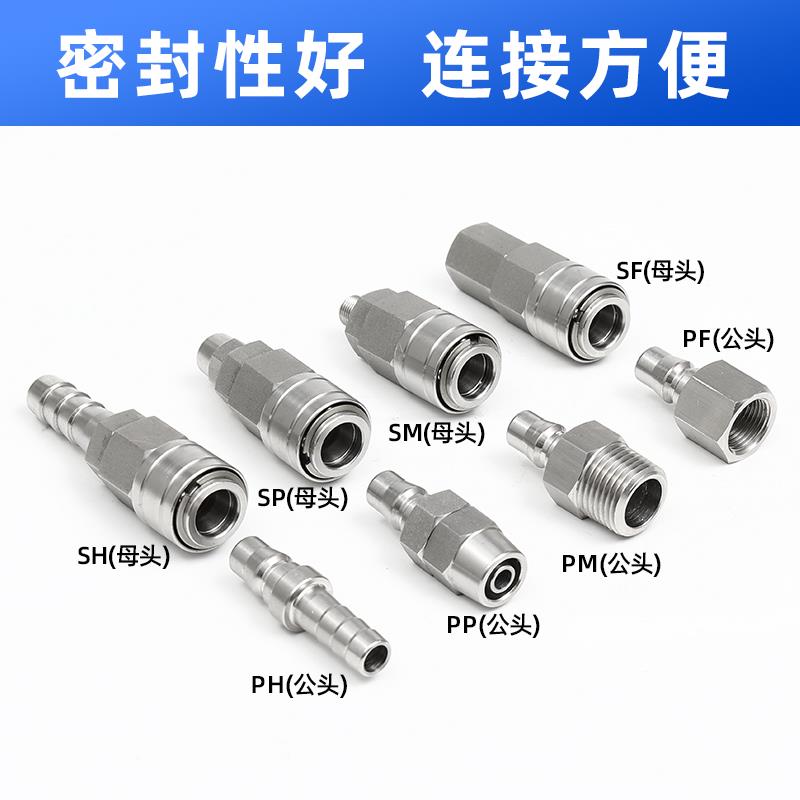 304不锈钢C式自锁快速接头气管接头气动空压机公母快插耐高温高压
