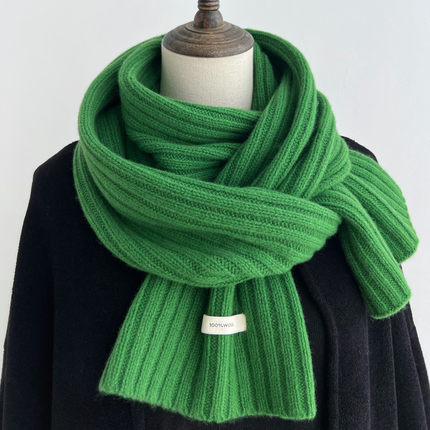 纯色绿色高档纯羊毛围巾女冬季基础新款针织毛线高级感生日礼物男