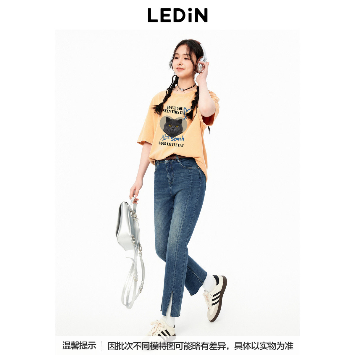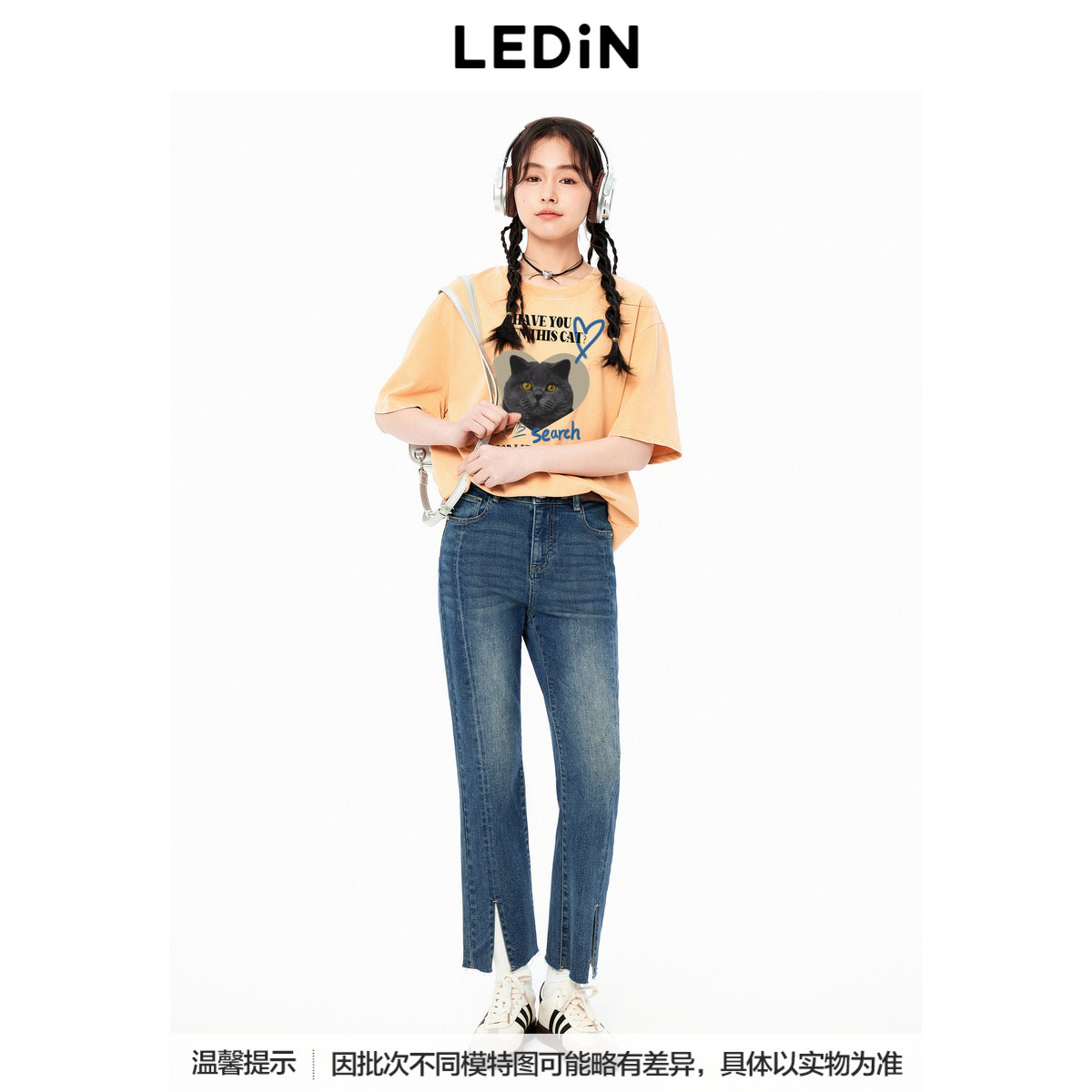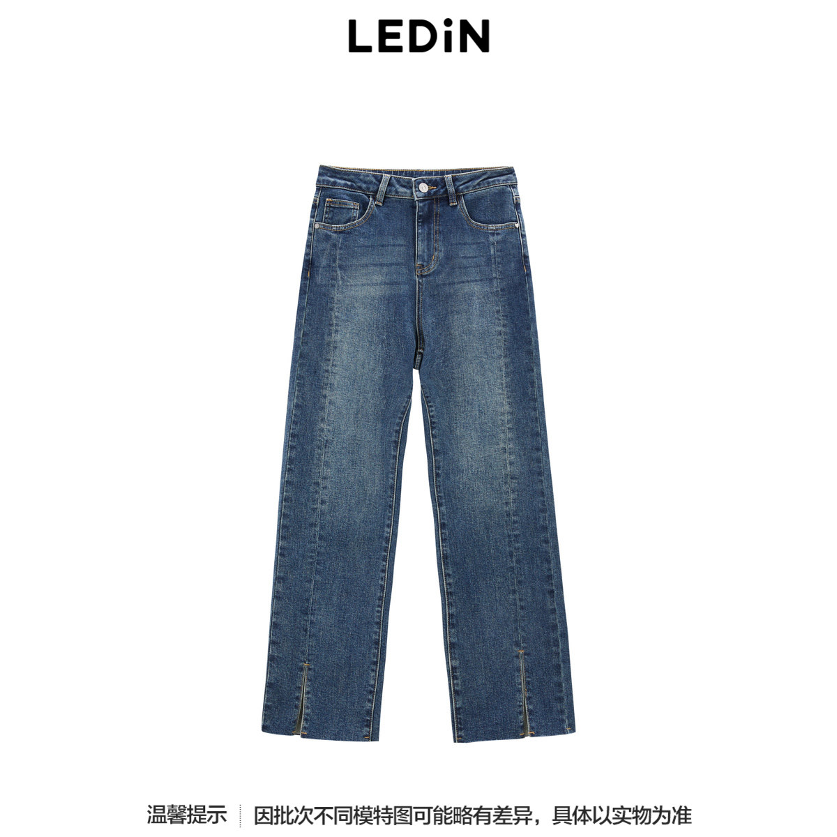 【商城同款】乐町分割线开叉牛仔烟管裤24新款百搭裤子C2HAE3142