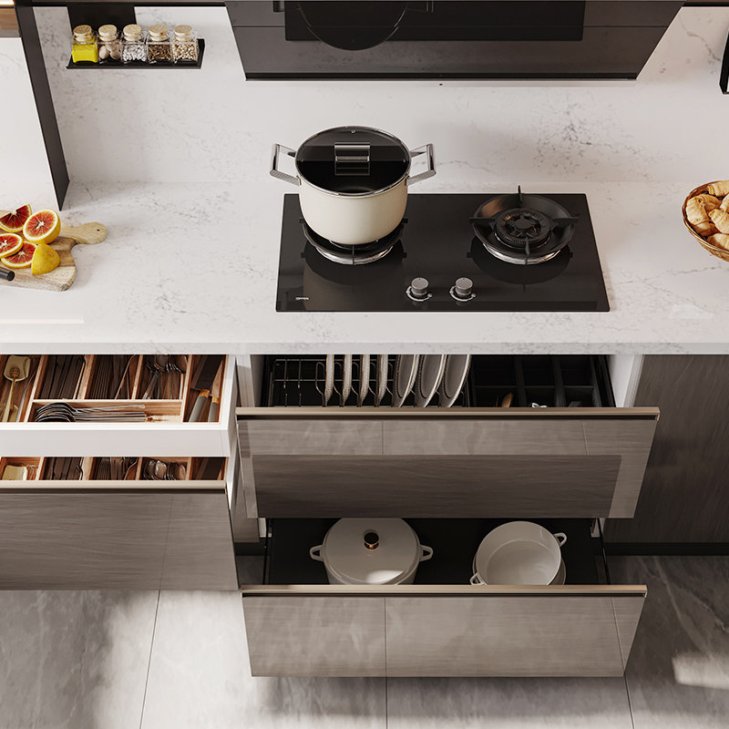 欧派厨房厨柜整体橱柜定制家用厨房灶台一体柜石英石台面厨柜