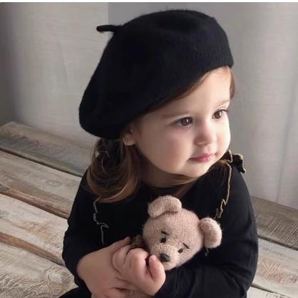秋冬儿童画家帽宝宝可爱贝雷帽针织小角尾巴毛线帽子男女童保暖帽