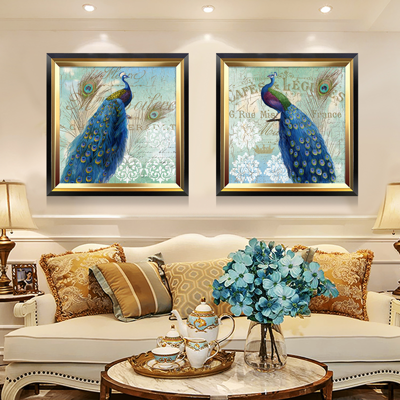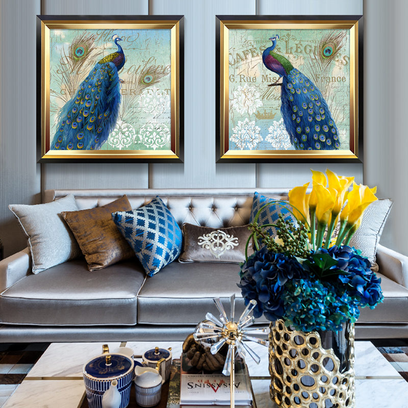 孔雀呈祥简欧美式风客厅装饰画