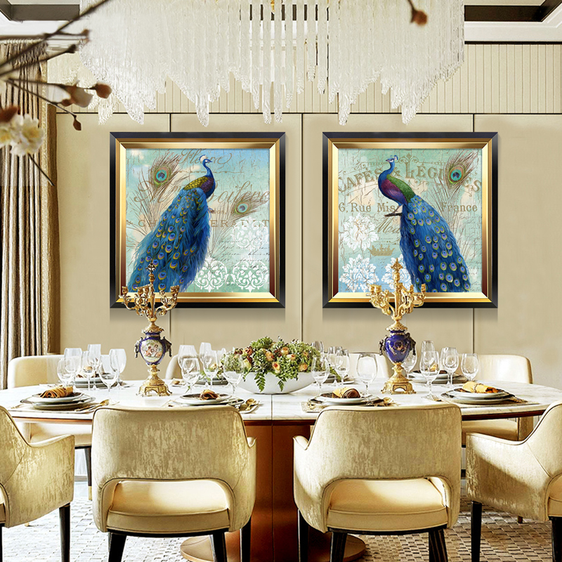 孔雀呈祥客厅装饰画现代简欧沙发背景墙壁画玄关过道餐厅美式挂画