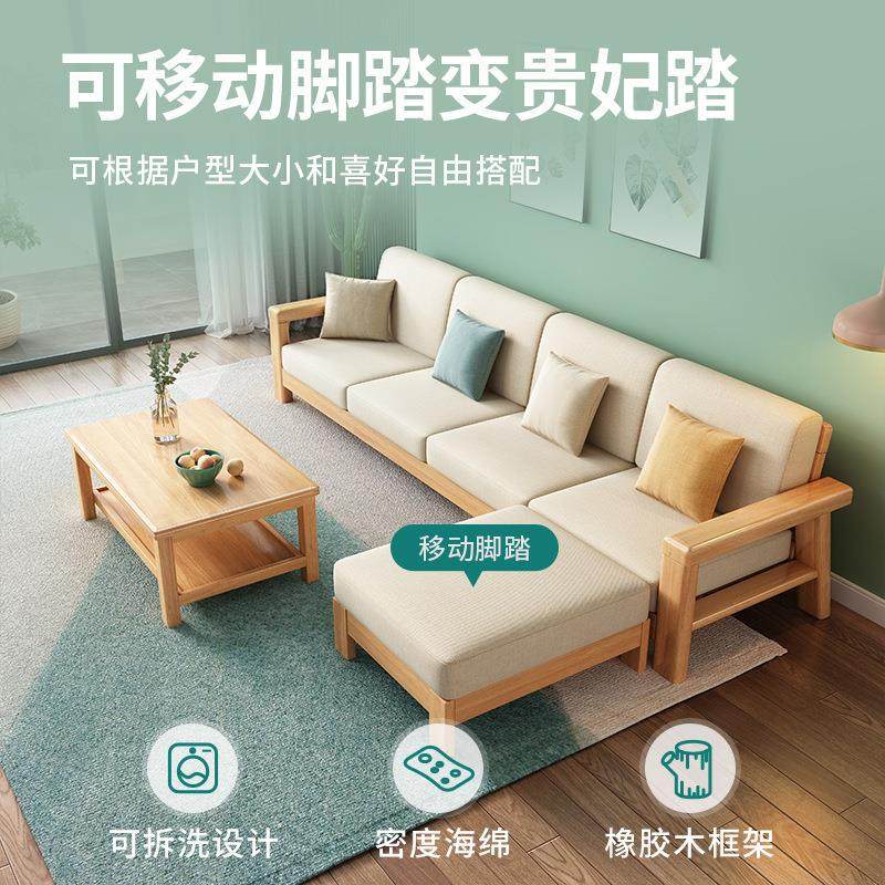 北欧实木沙发组合现代简约小户型可拆洗转角布艺沙发客厅原木沙发
