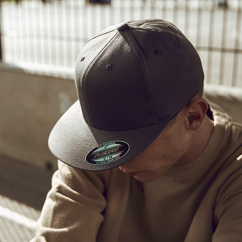 FLEXFIT 小头围全封闭平沿帽男士后闭口棒球帽嘻哈进口潮牌帽子