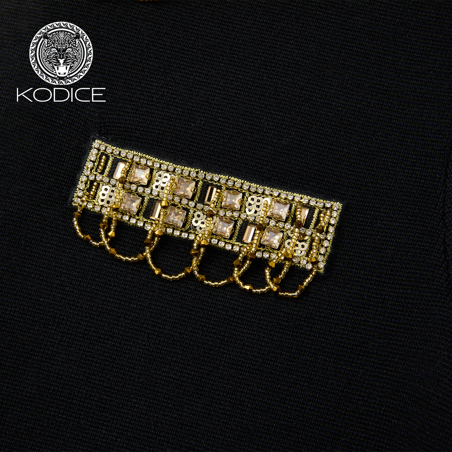 kodice秋冬新款黑色绵羊毛混纺钉珠拉链针织开衫小香风毛衫气质女