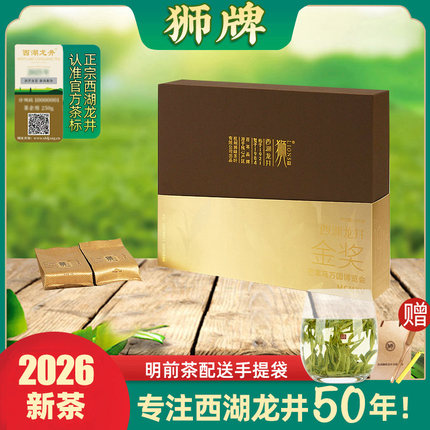 2026新茶预售 狮牌西湖龙井茶 狮峰龙井绿茶特级明前100克礼盒