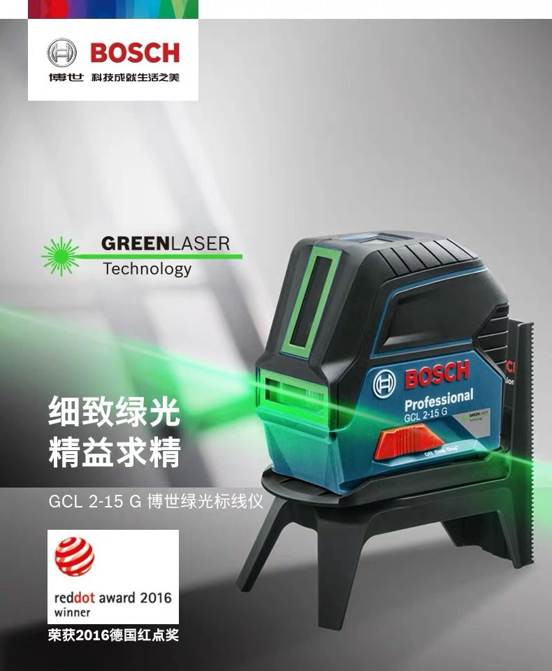 德国博世原装正品绿光标线仪GCL2-15G水平仪激光投线找平接收器