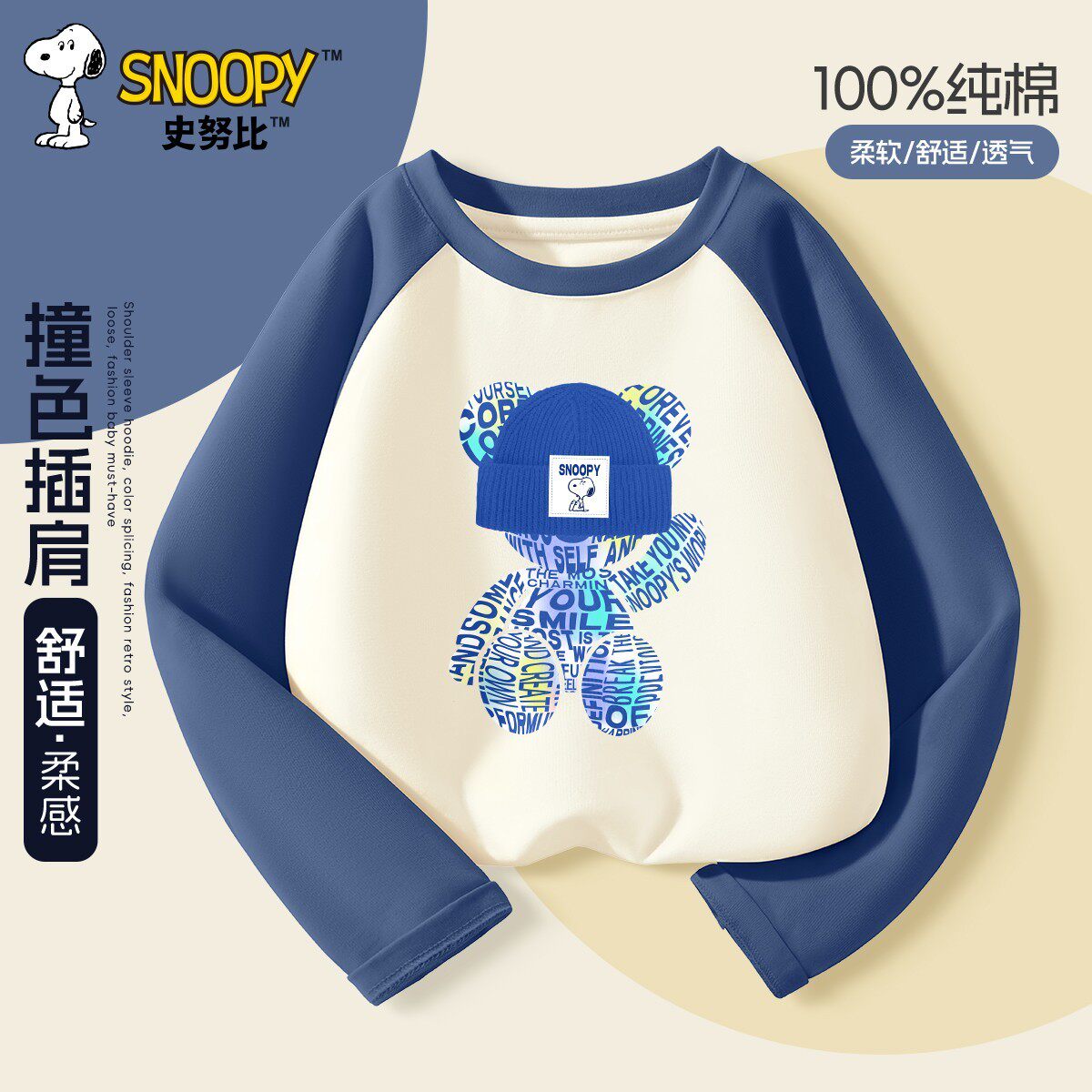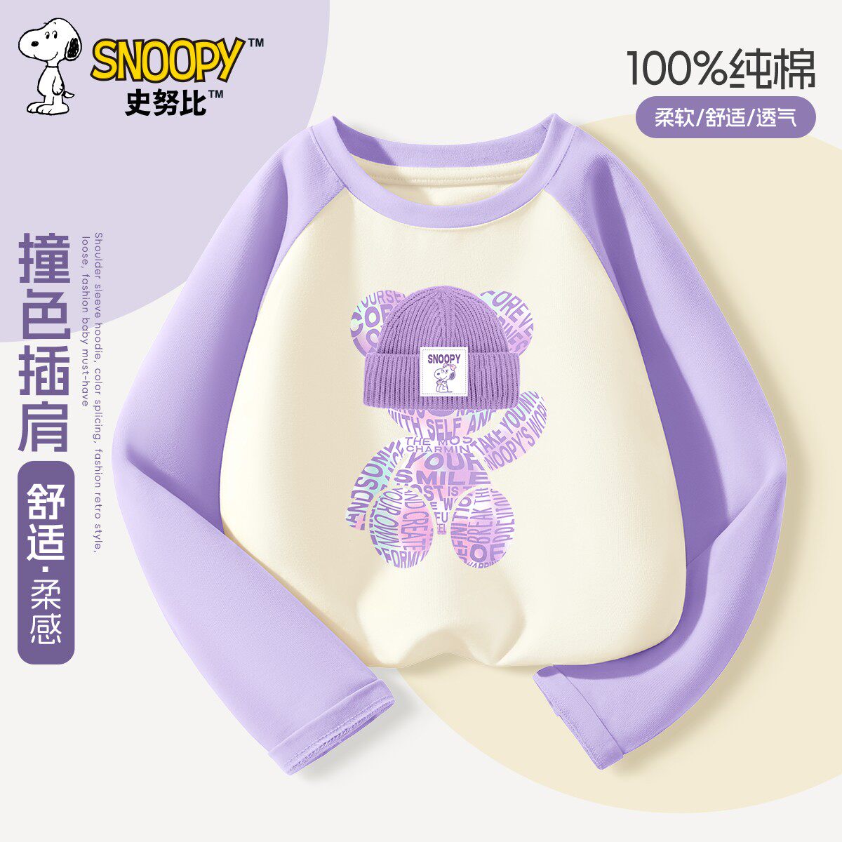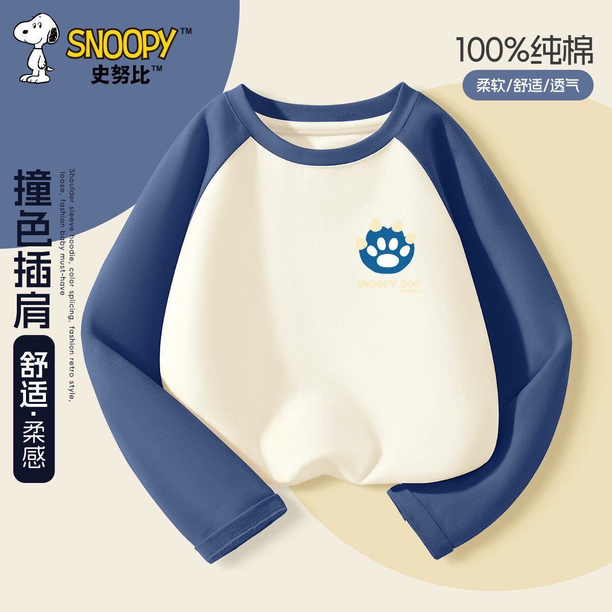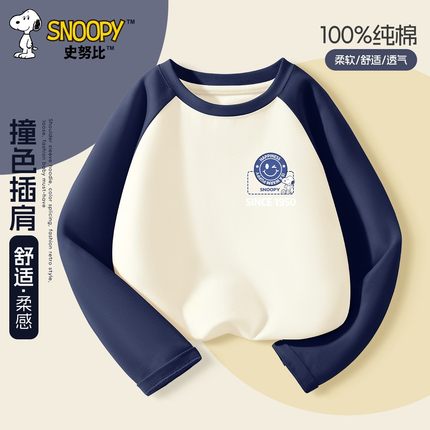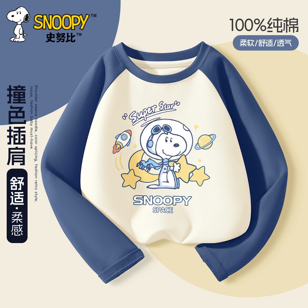 史努比男女童插肩长袖t恤春秋2026款纯棉打底衫薄款上衣儿童秋装