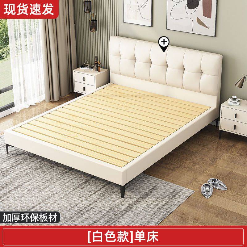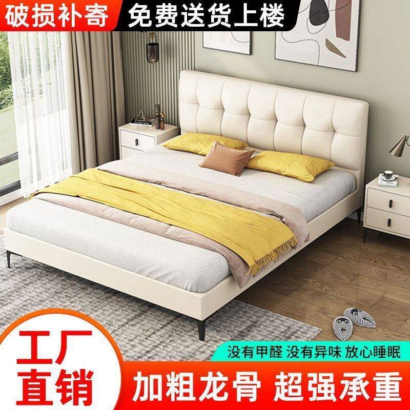 实木科技布皮艺床1.8双人主卧大床小户型1.5单人床出租屋软包床头