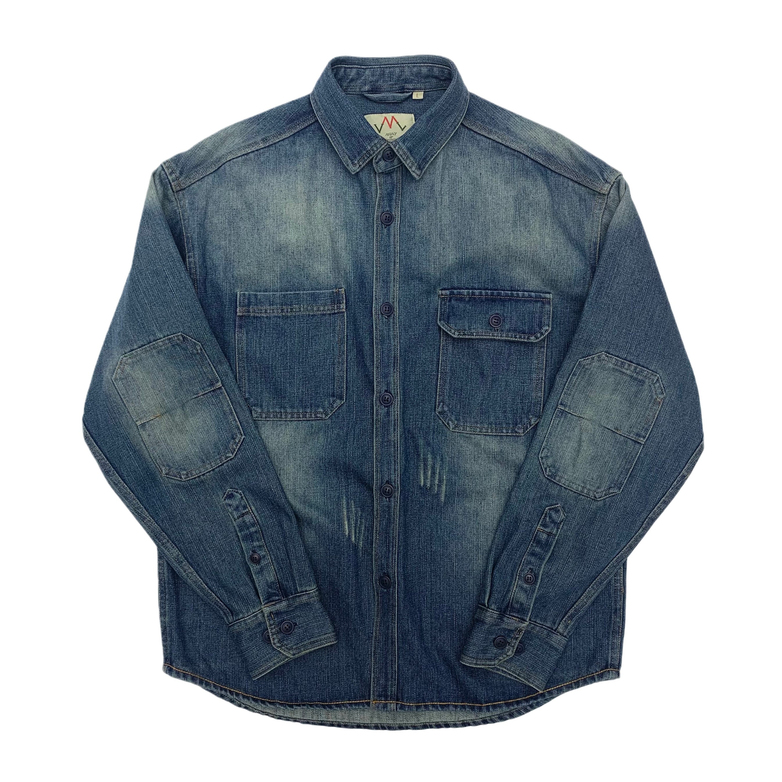 重磅水洗 工装牛仔衬衫男阿美咔叽秋季牛仔外套复古宽松大码衬衣