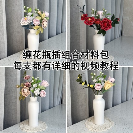 非遗缠花瓶插组合材料包家居装饰物摆件diy仿真花簇套装不是成品