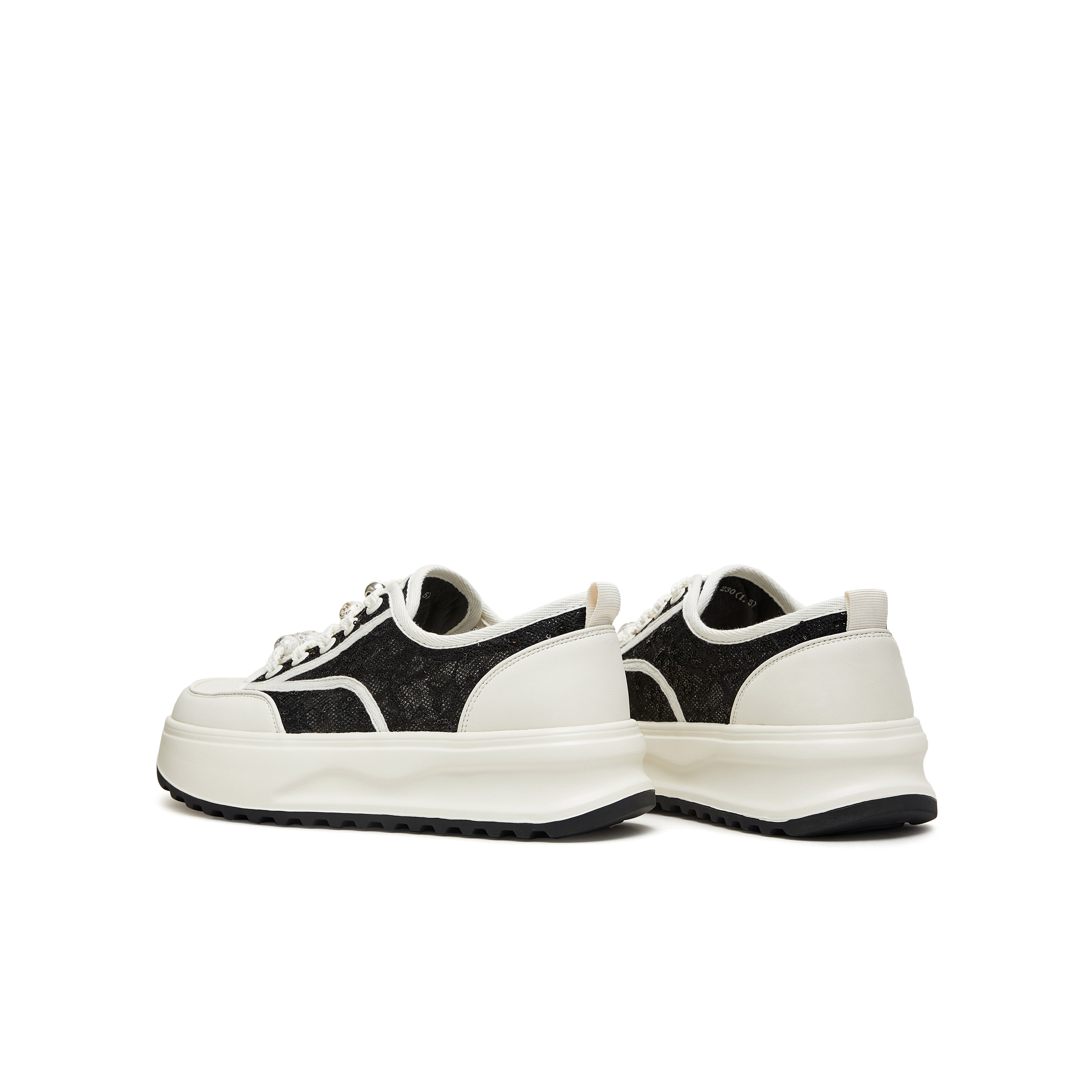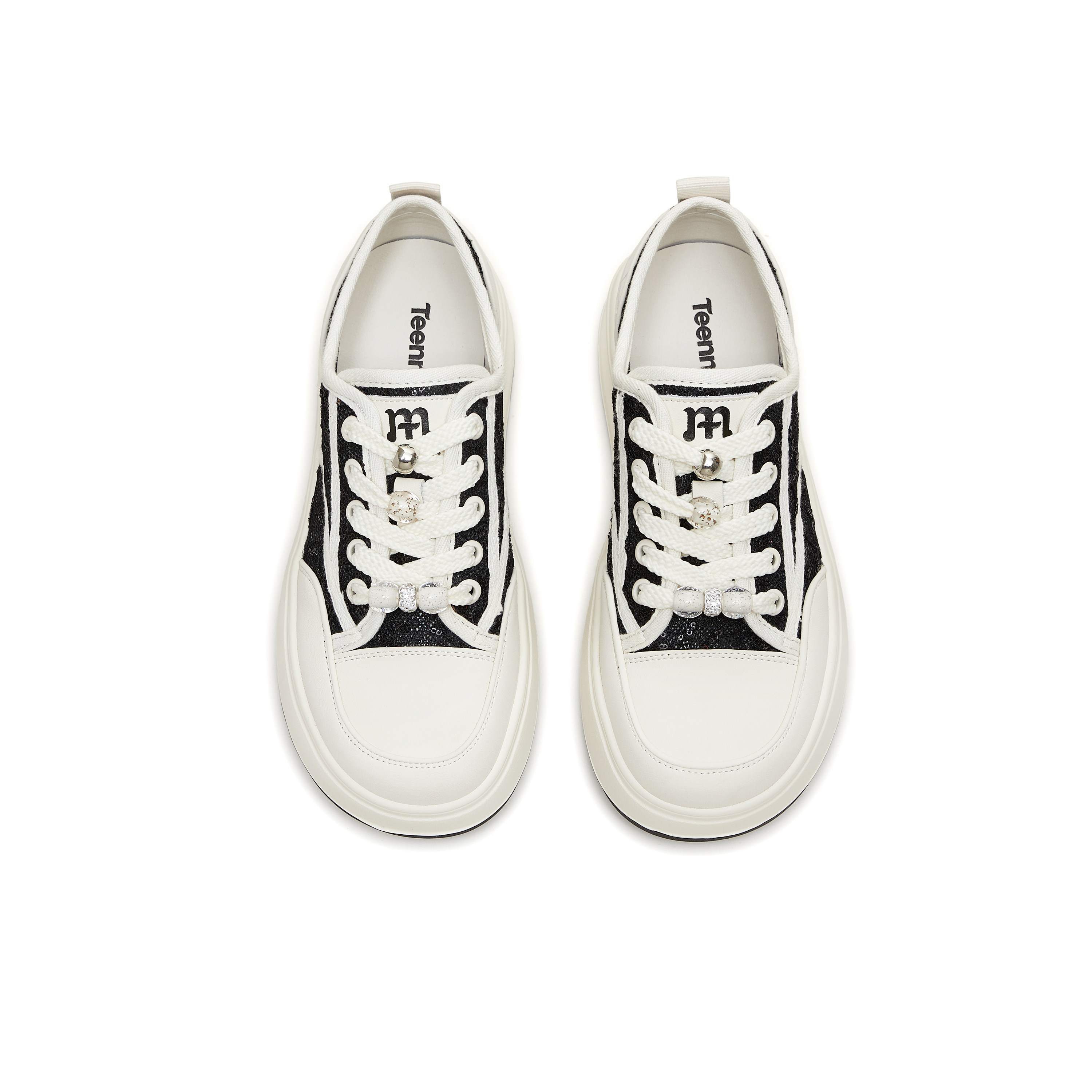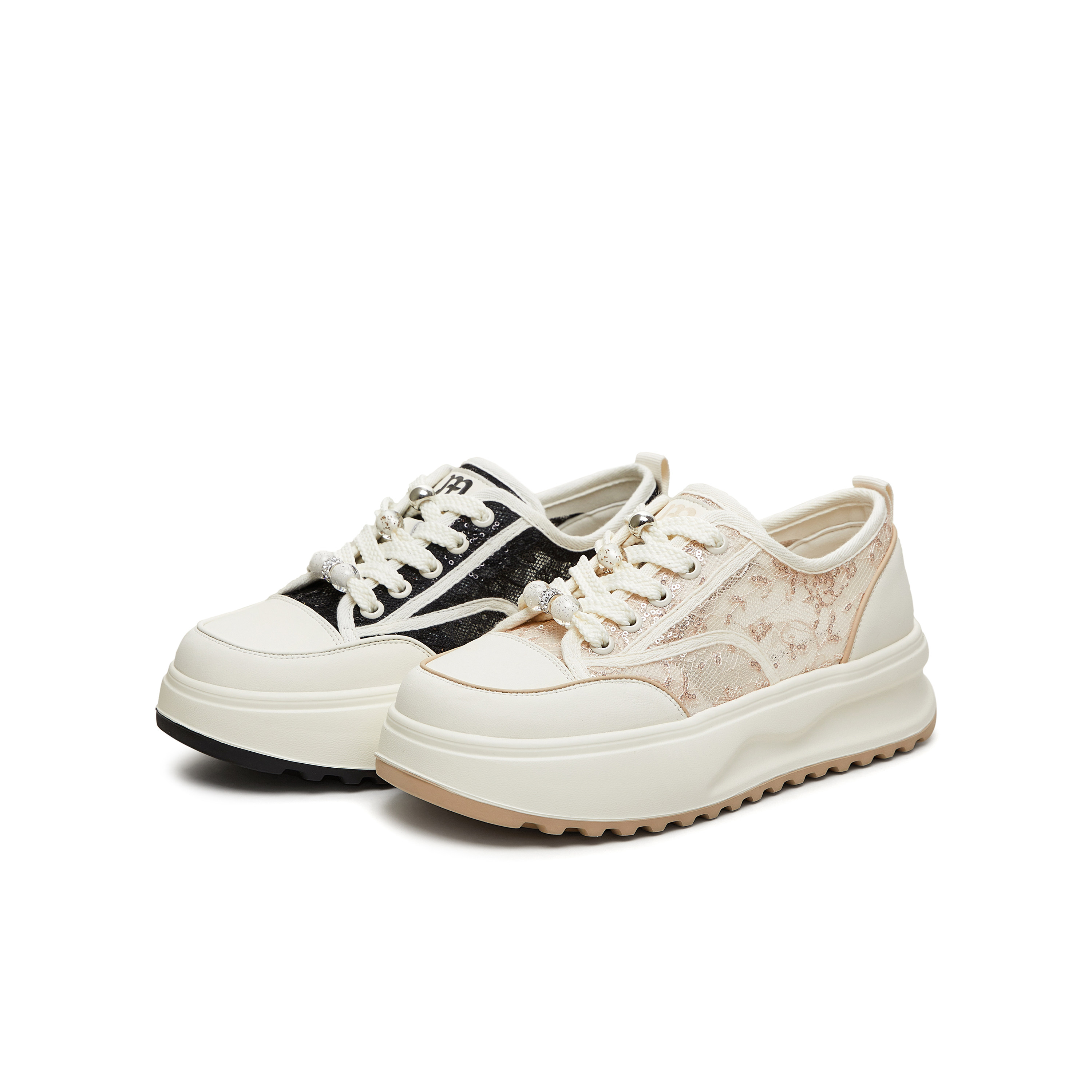 天美意2026夏新款商场同款厚底系带纯色百搭透气女板鞋BJ568BM6