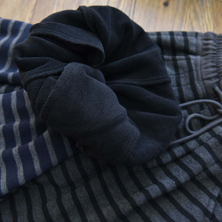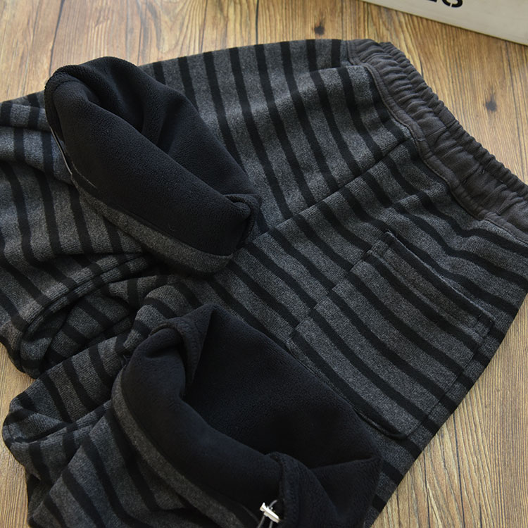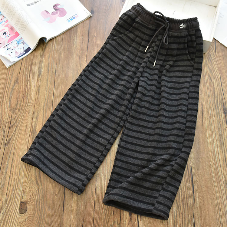 女童一体绒加厚保暖刺绣撞色条纹直筒裤 中大儿童宽松休闲长裤冬