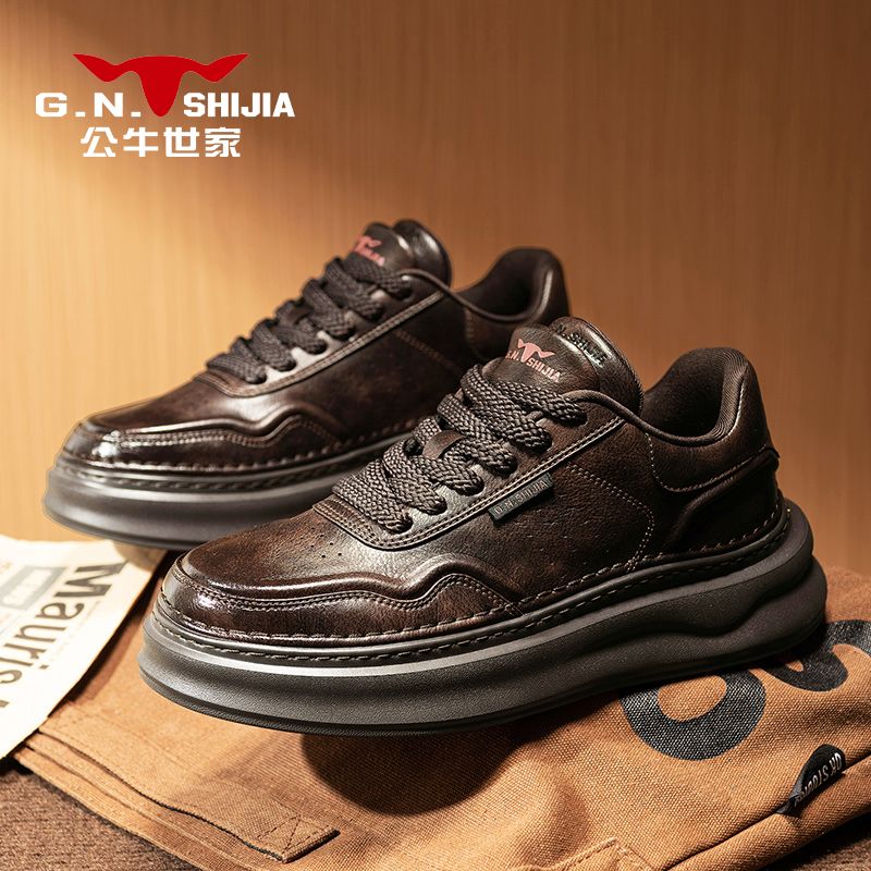 公牛世家男鞋冬秋2025新款休闲鞋英伦风轻奢痞帅高级感商务通勤鞋