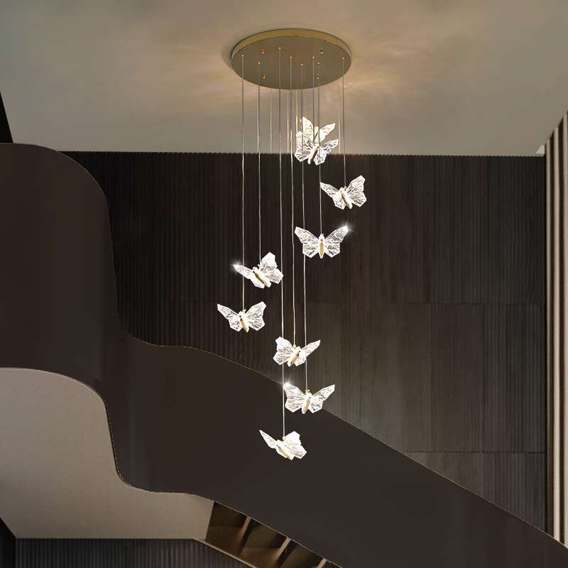 时尚现代别墅复式loft楼梯长吊灯个性蝴蝶客厅餐厅吧台灯商用灯饰