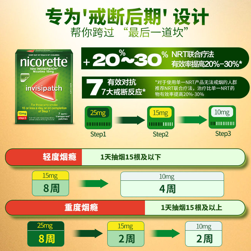 【自营】力克雷Nicorette尼古丁戒烟贴科学辅助戒烟正品原研药