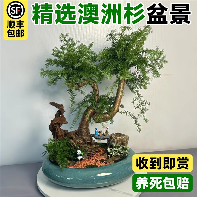 澳洲杉盆景不老松松树老桩盆栽室内办公室桌面禅意绿植物四季好养