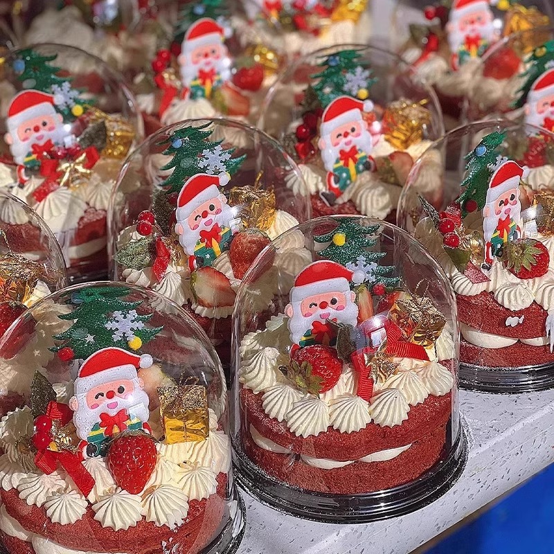 圣诞节4寸蛋糕包装盒透明草莓红丝绒黑森林西点慕斯千层蛋糕盒子