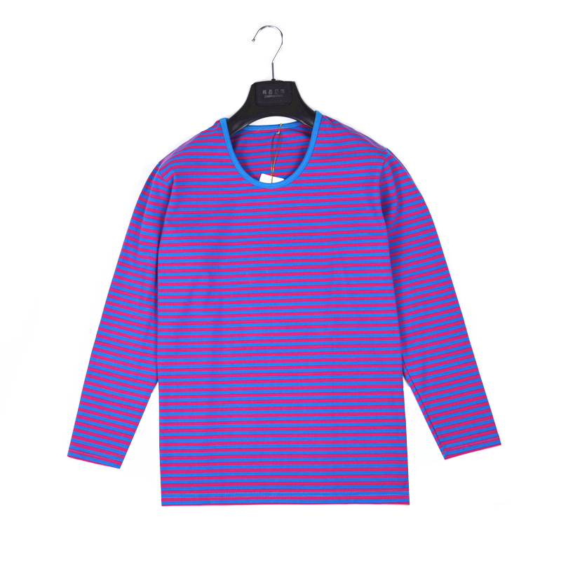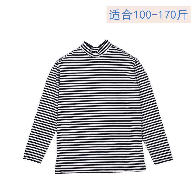 女士中高领纯棉秋衣中老年宽松全棉棉毛衫条纹秋衣上衣打底