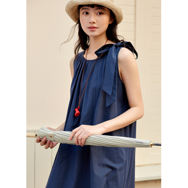 紫涵法式无袖挂脖连衣裙女2025年夏季新款莱赛尔宽松度假吊带长裙