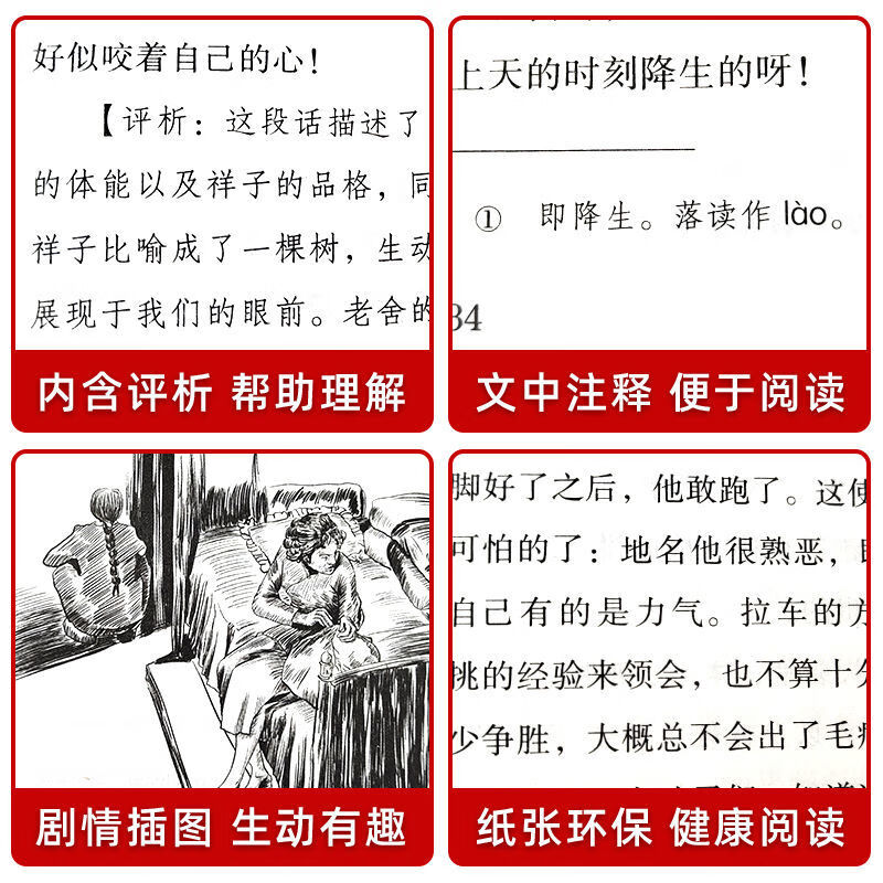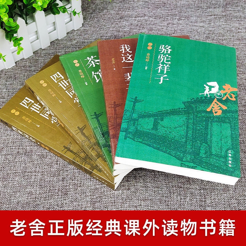 老舍经典作品全集全套5册 骆驼祥子 我这一辈子 茶馆 四世同堂原著正版 初中生版高中生版小学生版读本 老舍的书籍