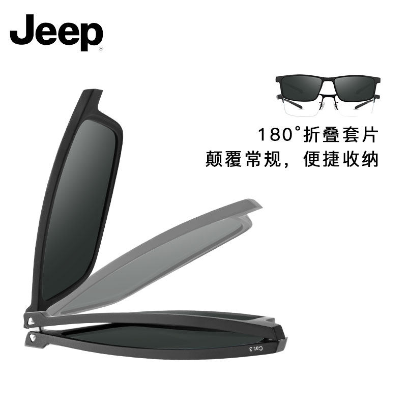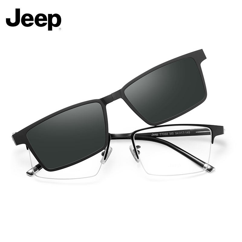 Jeep/吉普近视眼镜架男商务光学镜框圆脸配偏光太阳镜片套镜T7068