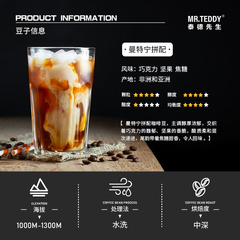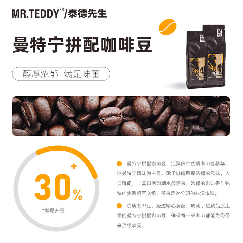 进口曼特宁意式咖啡醇香手冲咖啡粉美式浓缩新鲜烘焙黑咖啡豆1KG