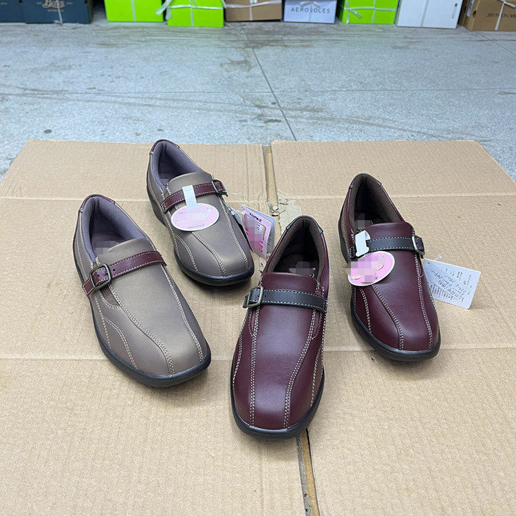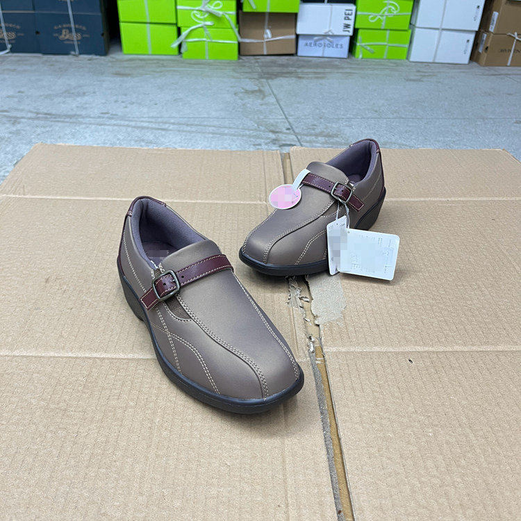 外贸原单女鞋新款时尚shoes圆头纯色皮带扣厚底休闲一脚蹬单鞋
