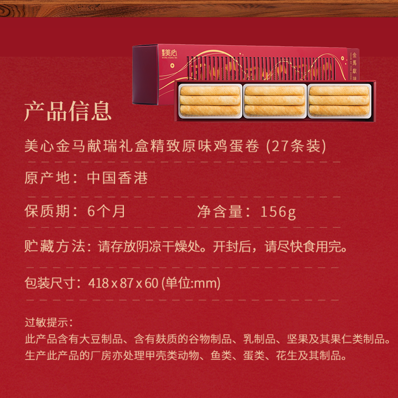 【新年礼盒】香港美心原味鸡蛋卷马年礼盒装年货礼送人团购新年