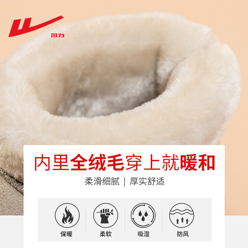 回力雪地靴女2025新款冬季加绒加厚东北防寒保暖棉鞋时尚黑色短靴