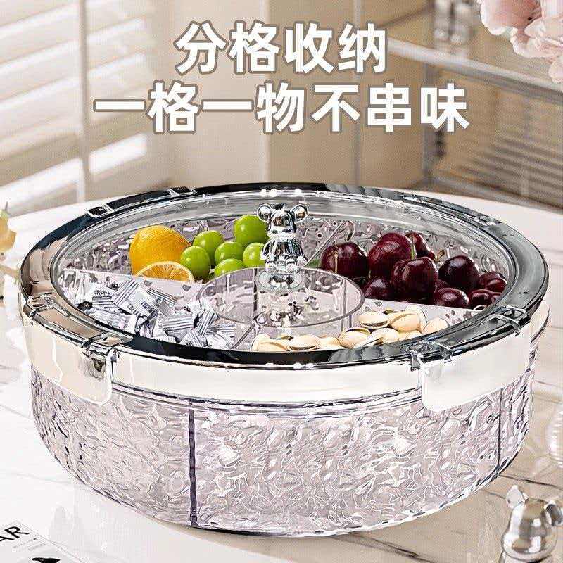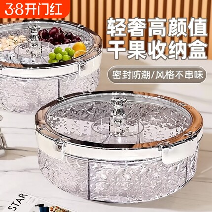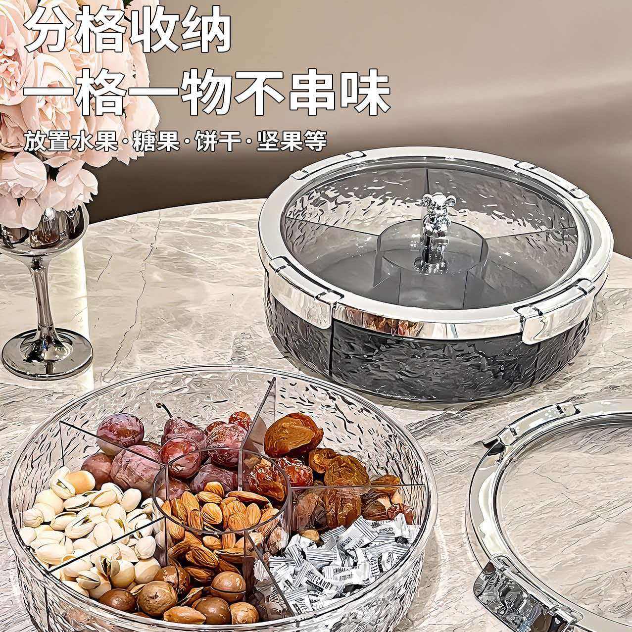 过年2026新年高颜值轻奢密封防潮分格坚果零食家用干果盘旋转年货