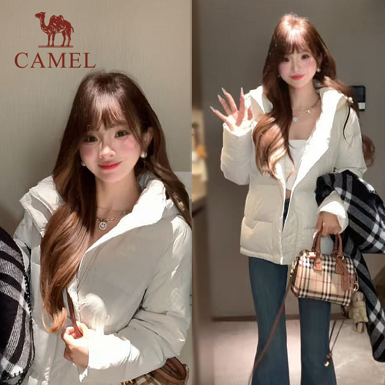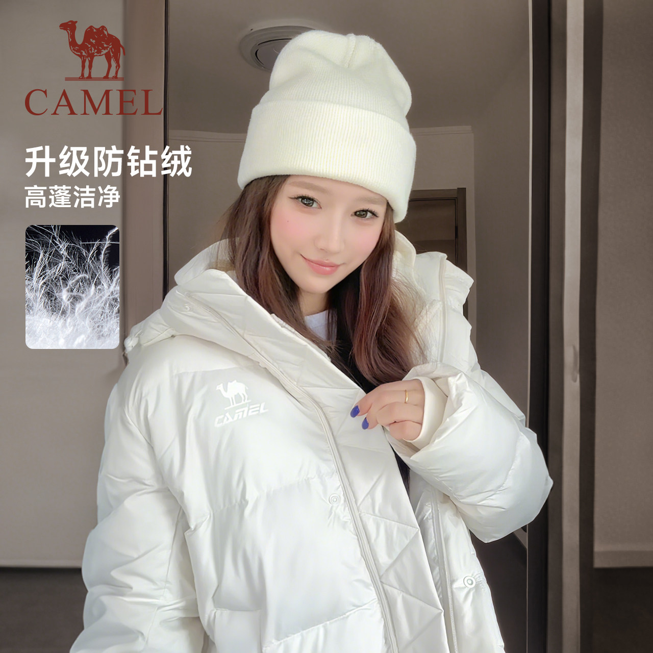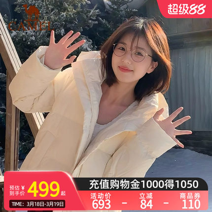 Camel骆驼女装泡芙羽绒服冬季鸭绒加厚防风连帽外套保暖面包服