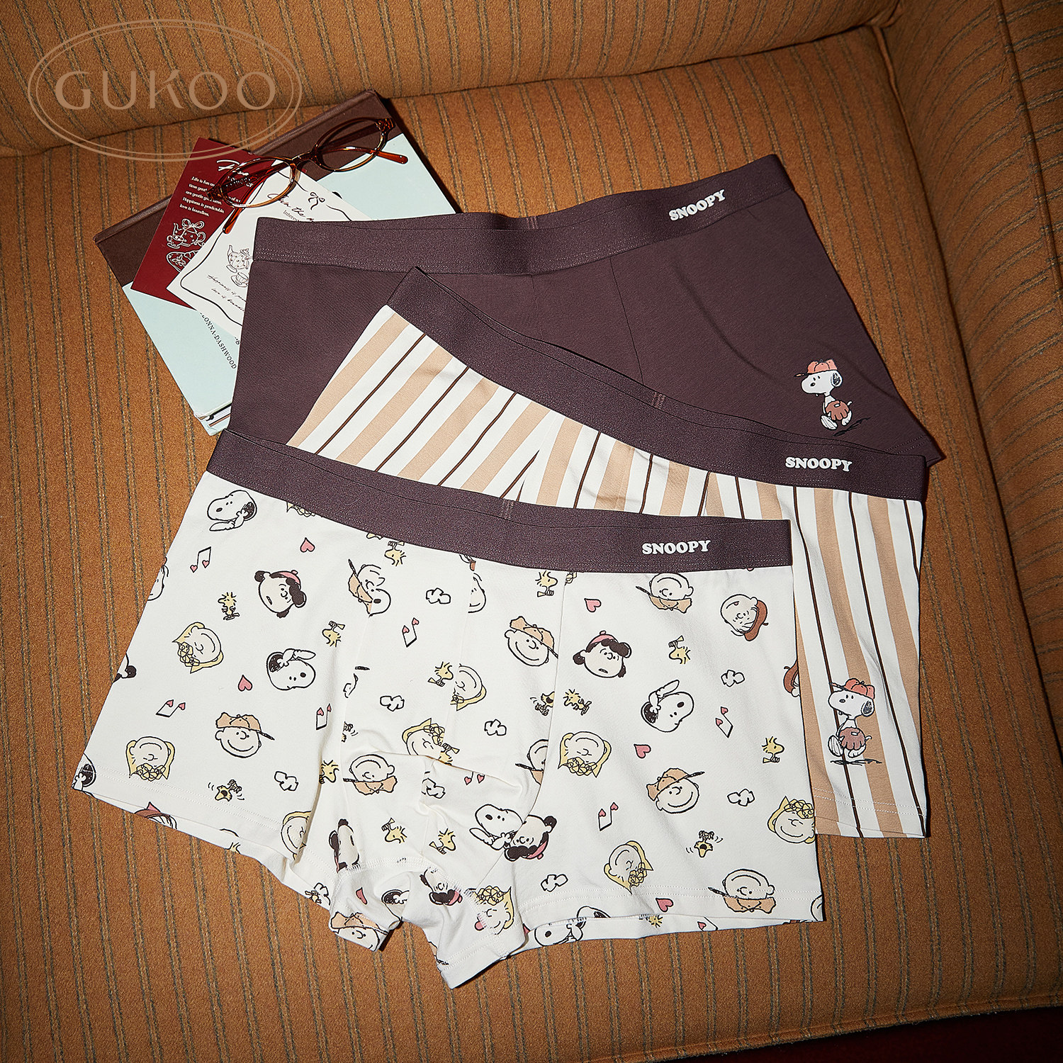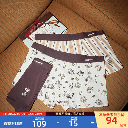 Gukoo/果壳内裤男春夏史努比联名新款纯棉裆男士三条装内裤组合