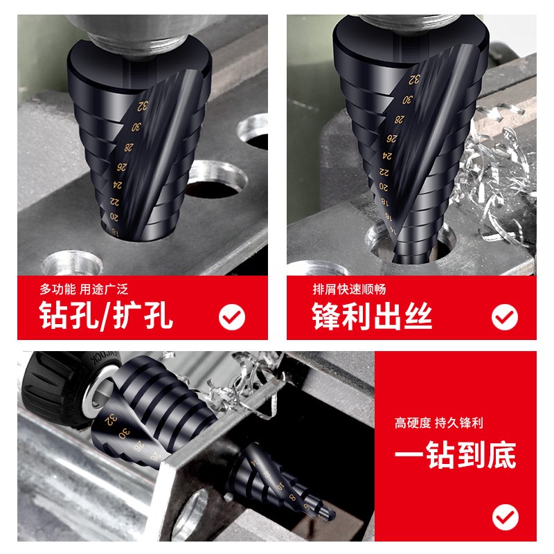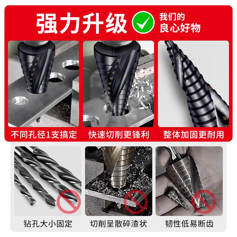 宝塔钻头万能打孔工业级螺旋金属开孔J器不锈钢高硬度阶梯钻头