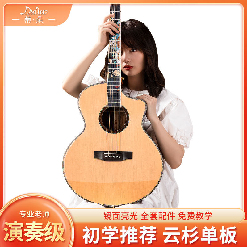 蒂朵正品41寸吉他云杉JF单板D桶民谣吉他初学者男女生木吉他乐器