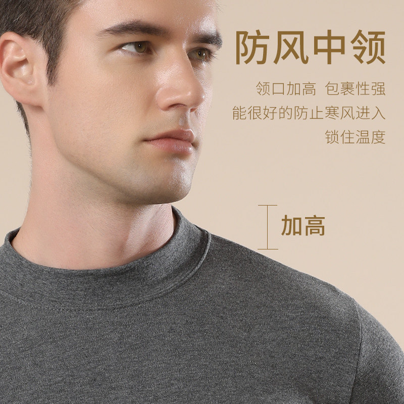 七匹狼男半高领纯棉毛衫保暖上衣内衣套装秋衣裤中年老人上身单件