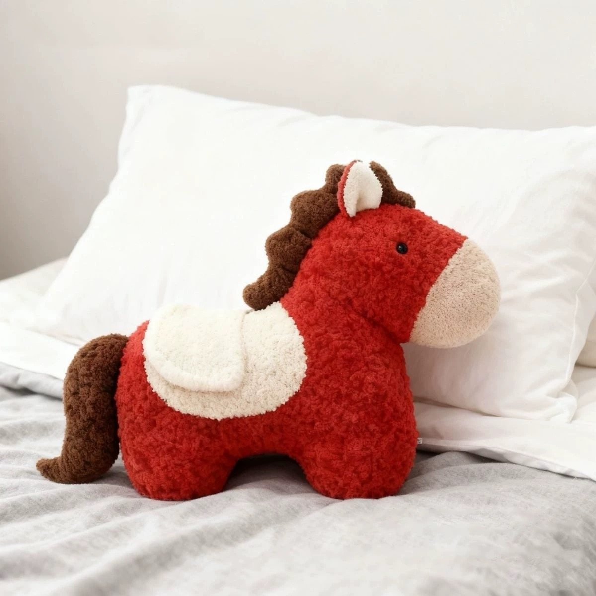 可爱小马毛绒抱枕异形靠垫红色玩偶马年吉祥物高级超软春节沙发女