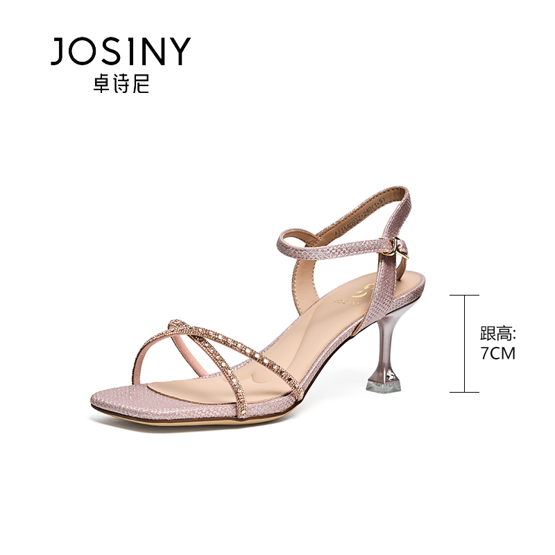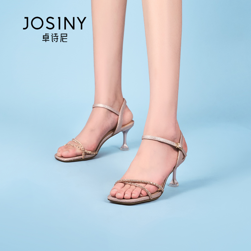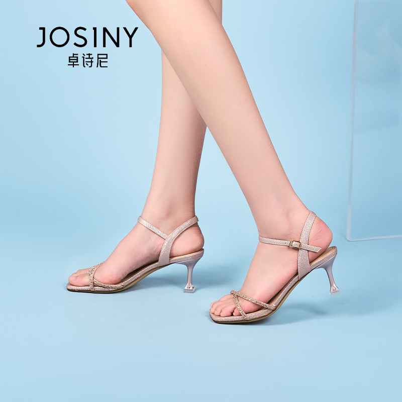 卓诗尼优惠时尚休闲一字带时装凉鞋女配裙子不累脚单鞋细跟高跟鞋