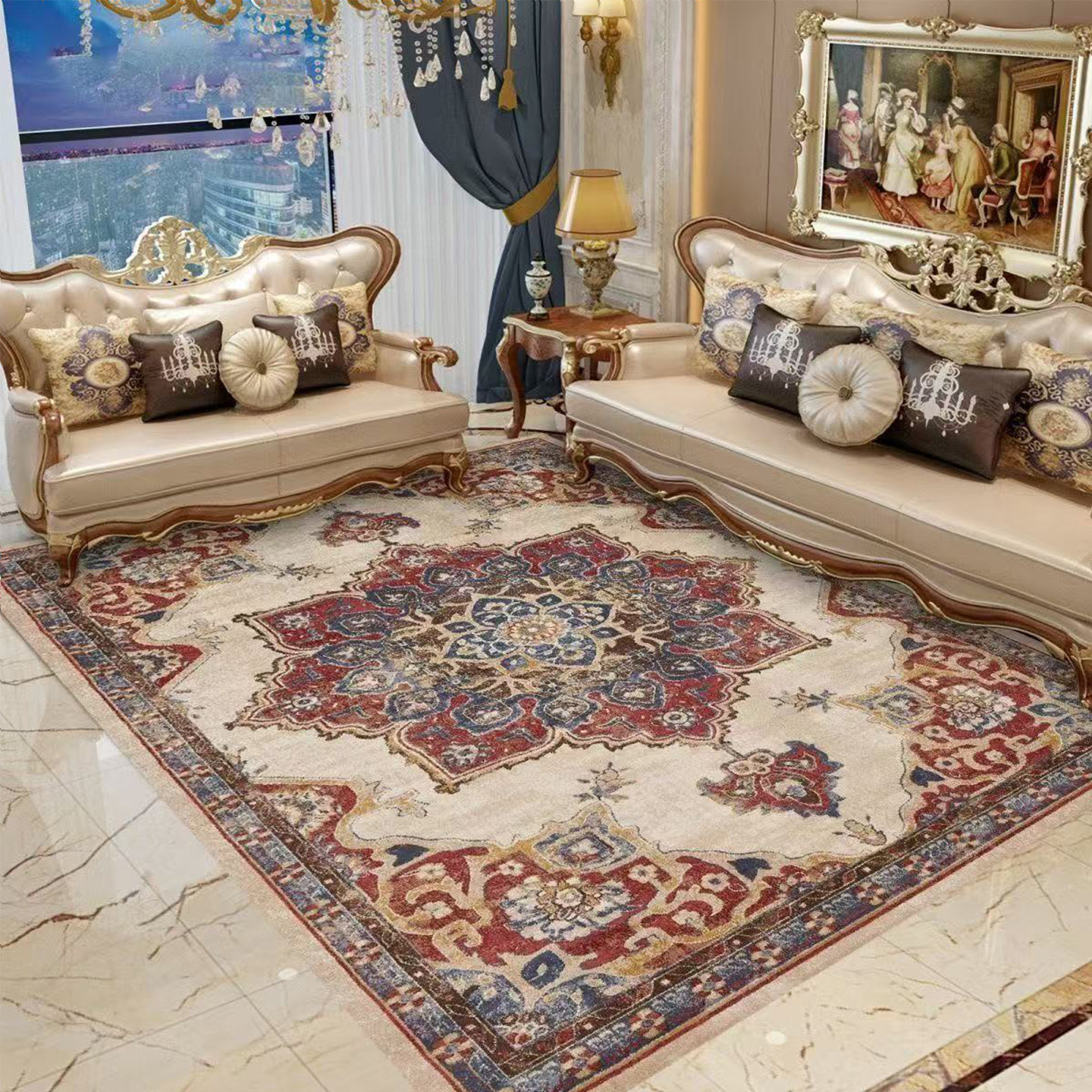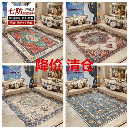 外贸客厅地毯沙发茶几地垫卧室床边毯复古民族风高级轻奢美式地垫