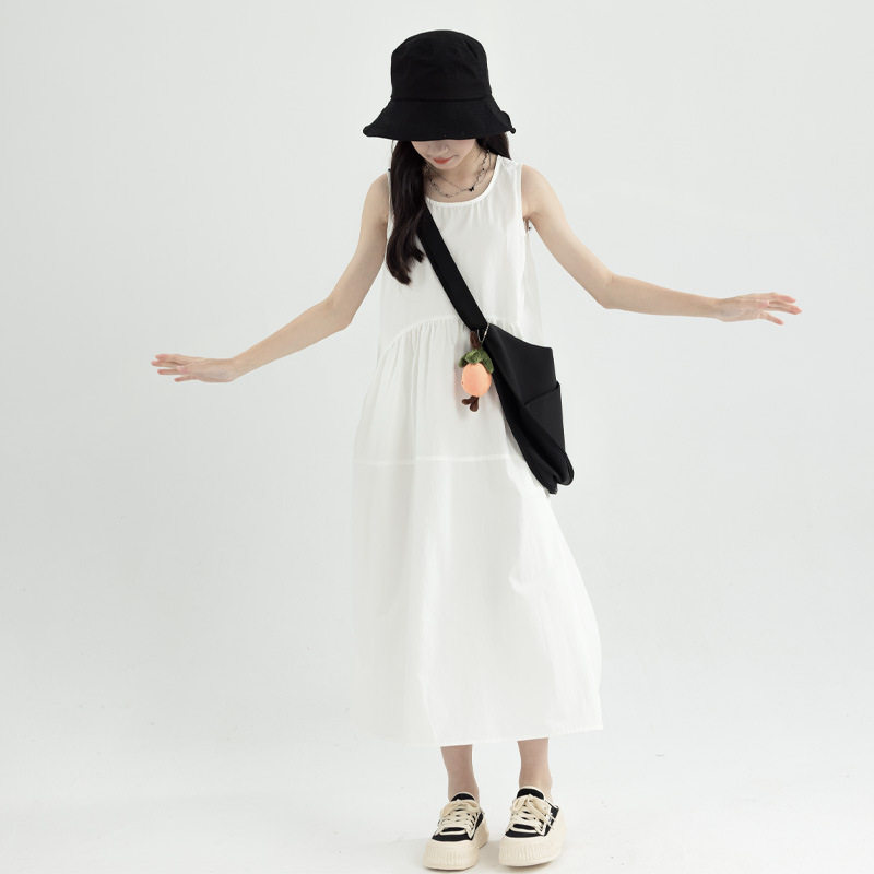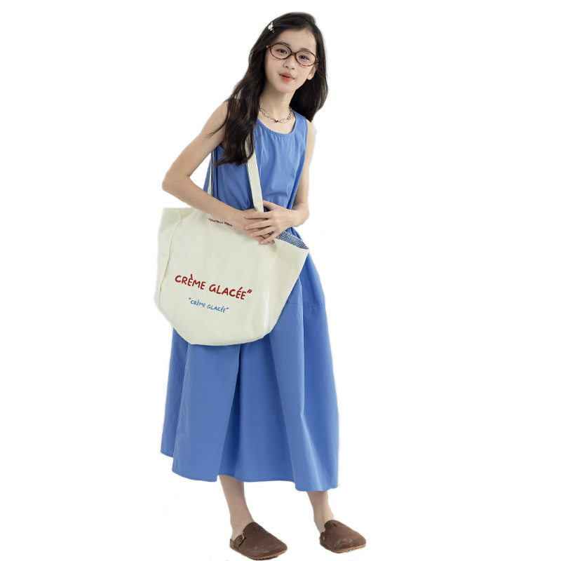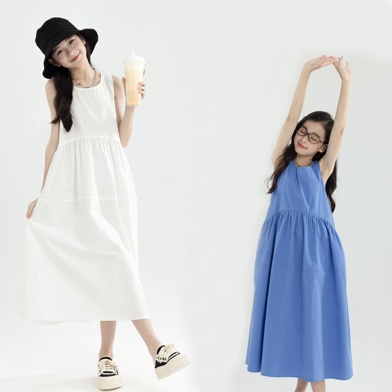 亲子母女装女童无袖连衣裙中大童森系长裙女孩纯棉海边沙滩背心裙