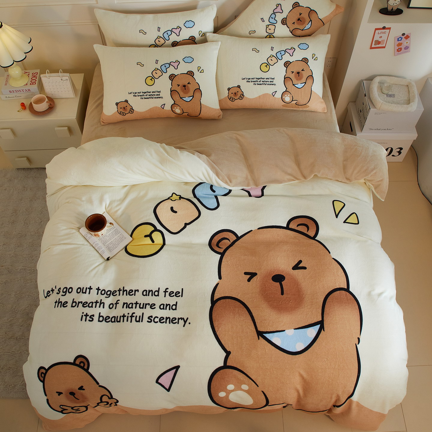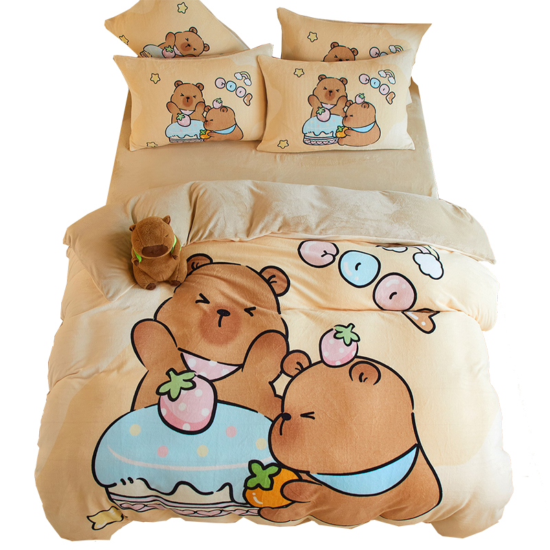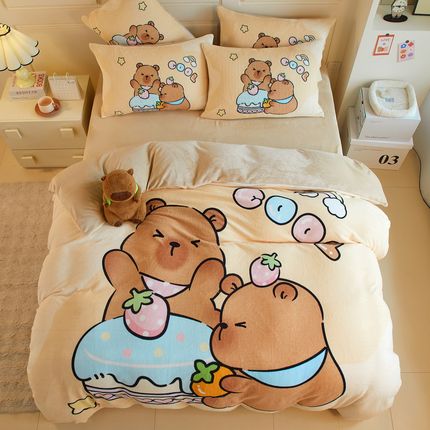 卡皮巴拉牛奶绒三四件套冬季双面加绒卡通儿童床品被套法兰绒床笠