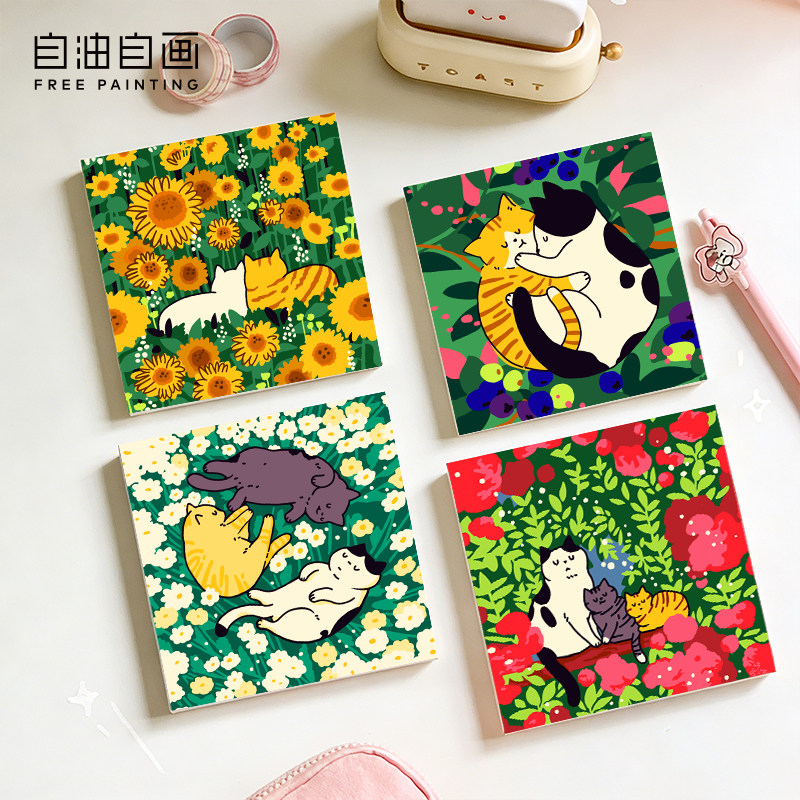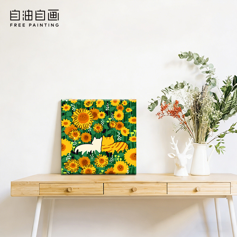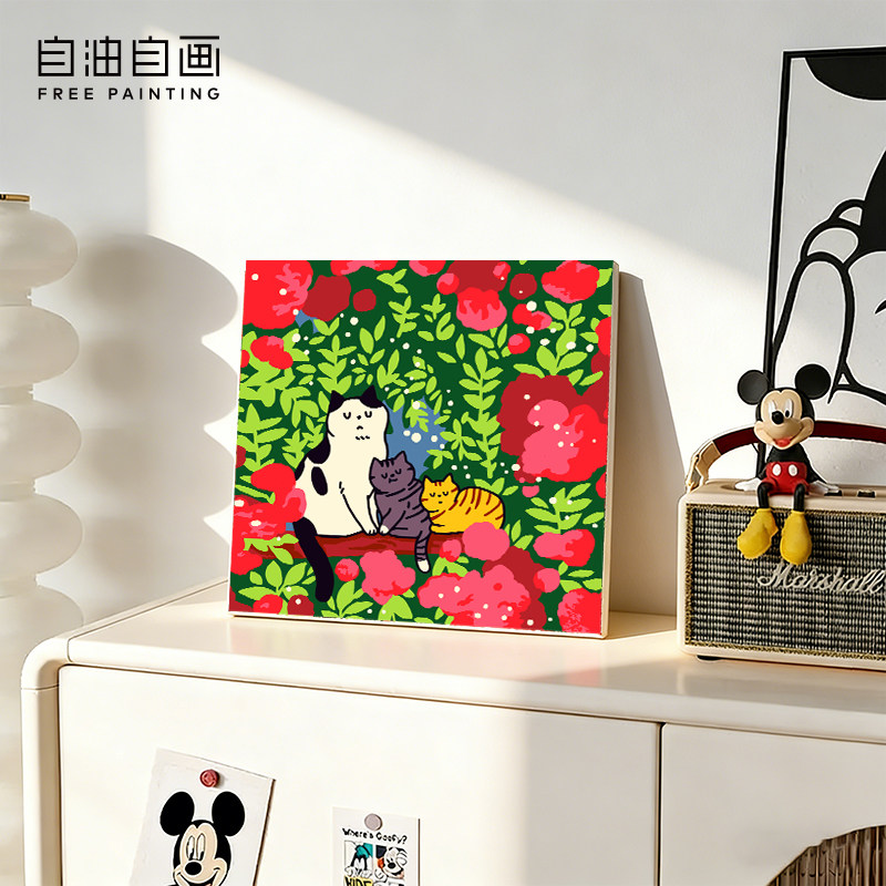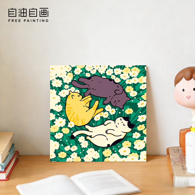 自油自画 数字油画diy 填充手工手绘卡通儿童填色猫咪亲子摆台画