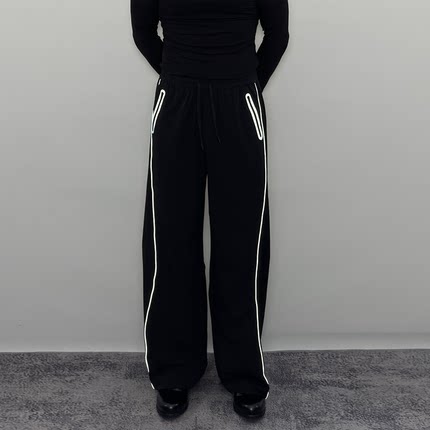 Roast lucky美式反光压胶织带直筒长裤 男复古防水休闲运动裤