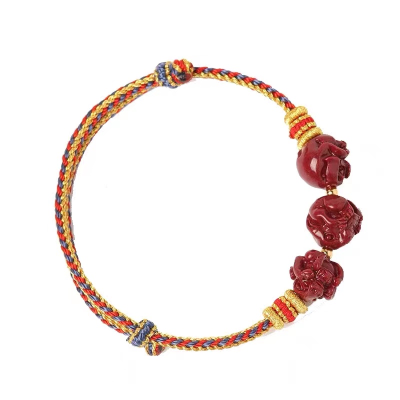 新款太岁红绳手链朱砂三合本命年男女手串生肖蛇年龙虎猴猪护身符