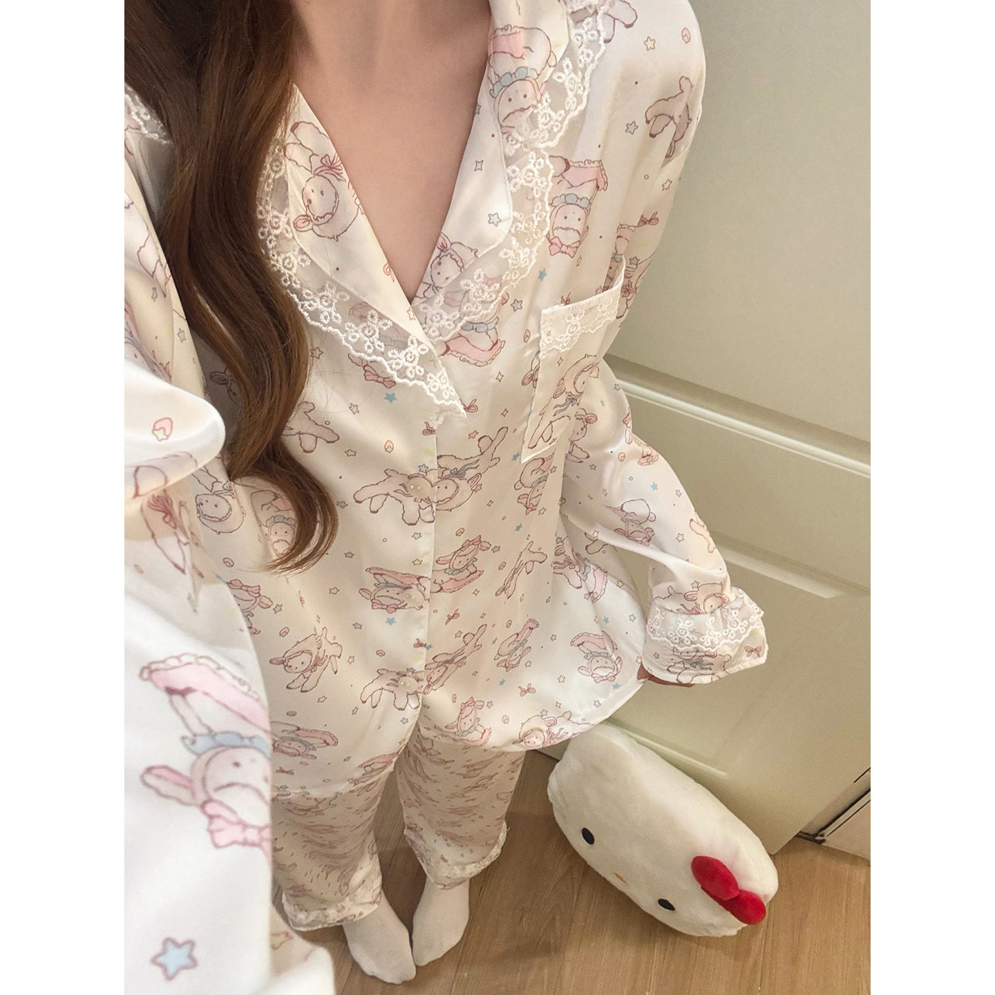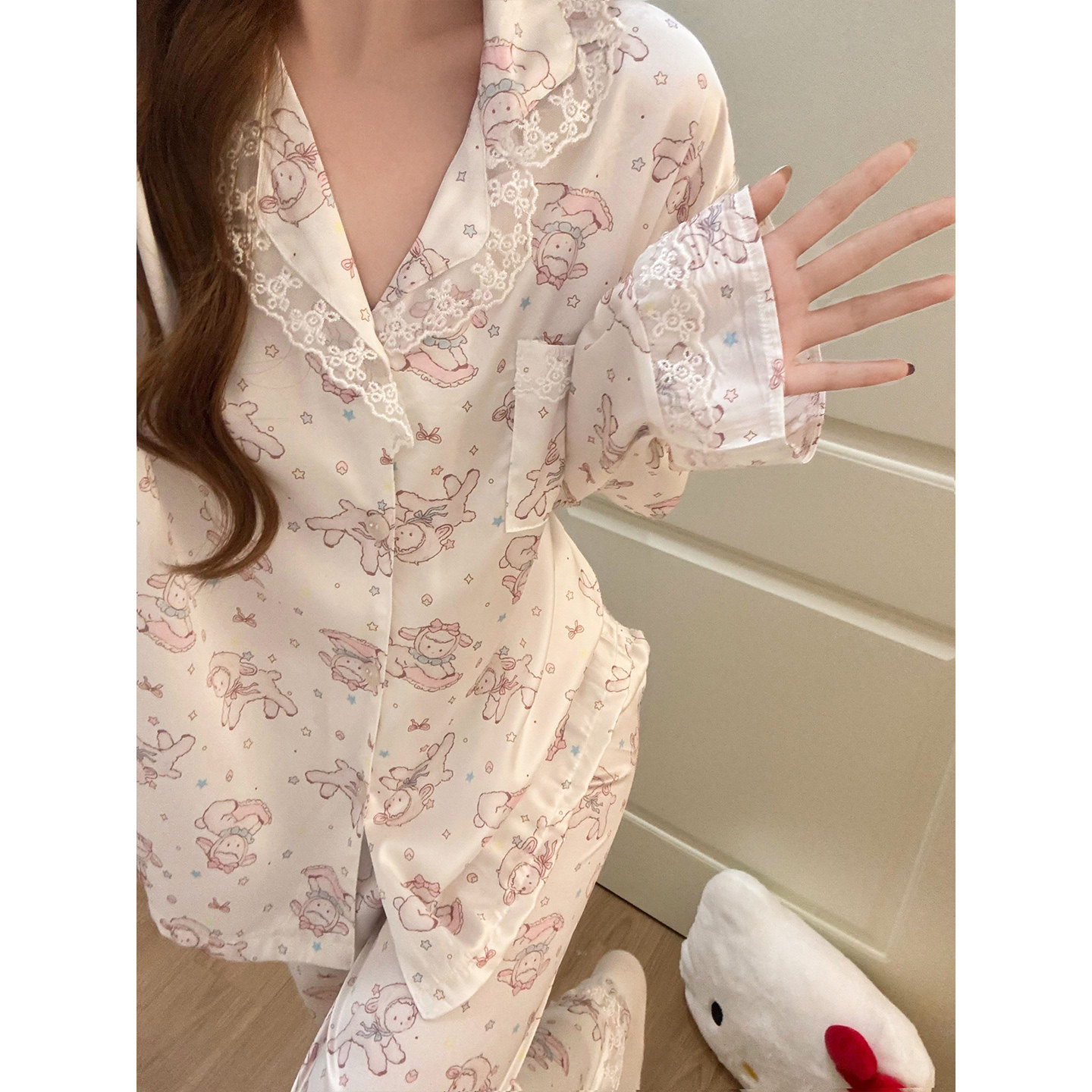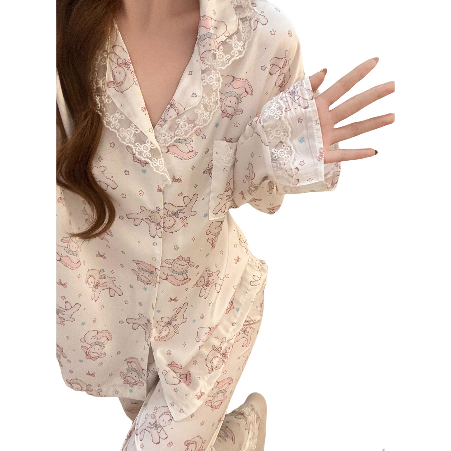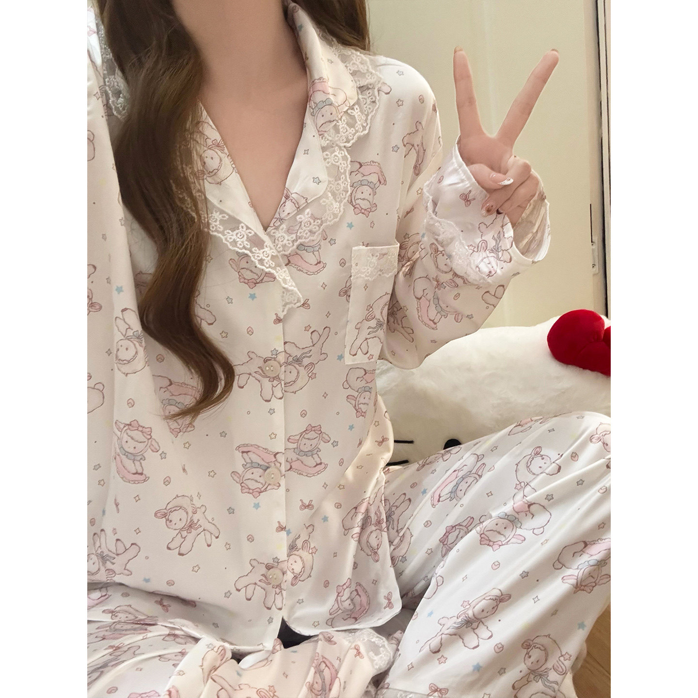 冰丝睡衣女春夏季蕾丝边长袖2026新款卡通丝绸可爱少女薄款家居服