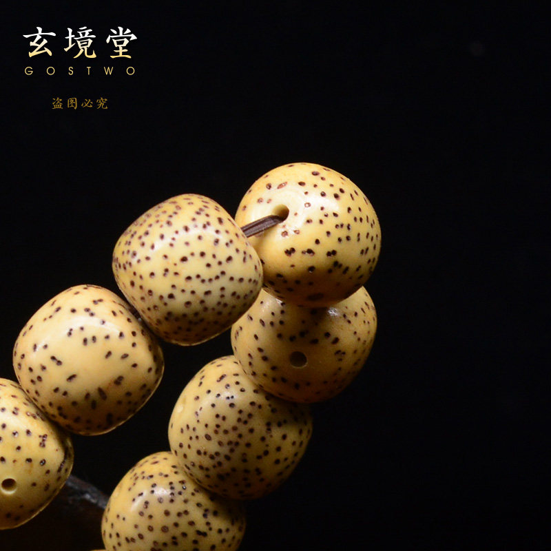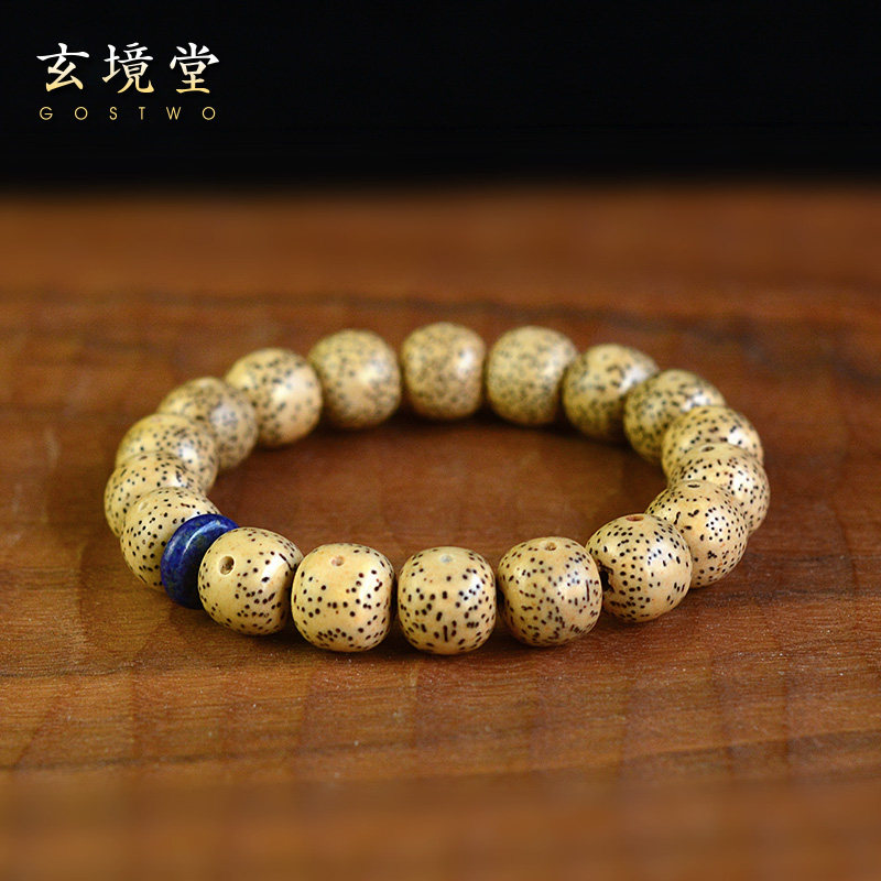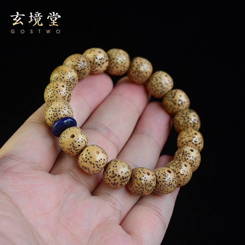 原生态星月菩提手串老型桶珠正月12x11mm青金石无脱脂黄籽抛光